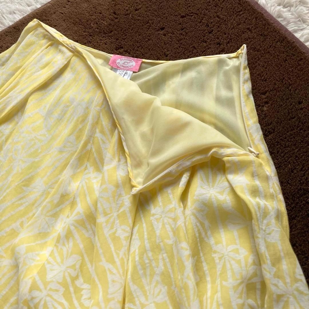 BLUGIRL ブルーガール ブルマリン フ スカート Aライン りぼん柄 総柄 シアー シースルー コットンシルク イタリア製 イエロー ホワイト I 38 D