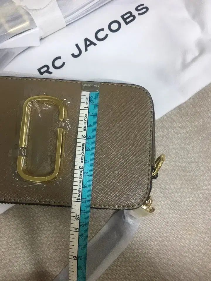 これはマークジェイコブスの新しいスナップショットクロスバッグです。トーンダウンしたベージュ色なので、どんな服装にも合います。バッグストラップにはマーク・ジェイコブスのロゴがあしらわれ、さらに美しく仕上がっています。