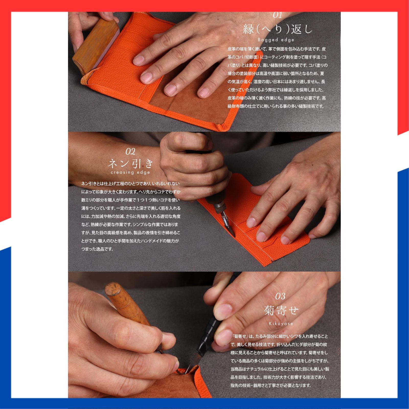 熟練の職人が手作業で丁寧に全工程を仕上げています。 効率の良さよりも品質の高さを追求した、丈夫で美しいアイテムです。