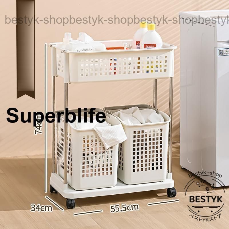 ランドリーバスケット ランドリーラック 2段 3段 キャスター 大容量 スリム 洗濯かご 脱衣カゴ ランドリーワゴン かご 洗面収納673