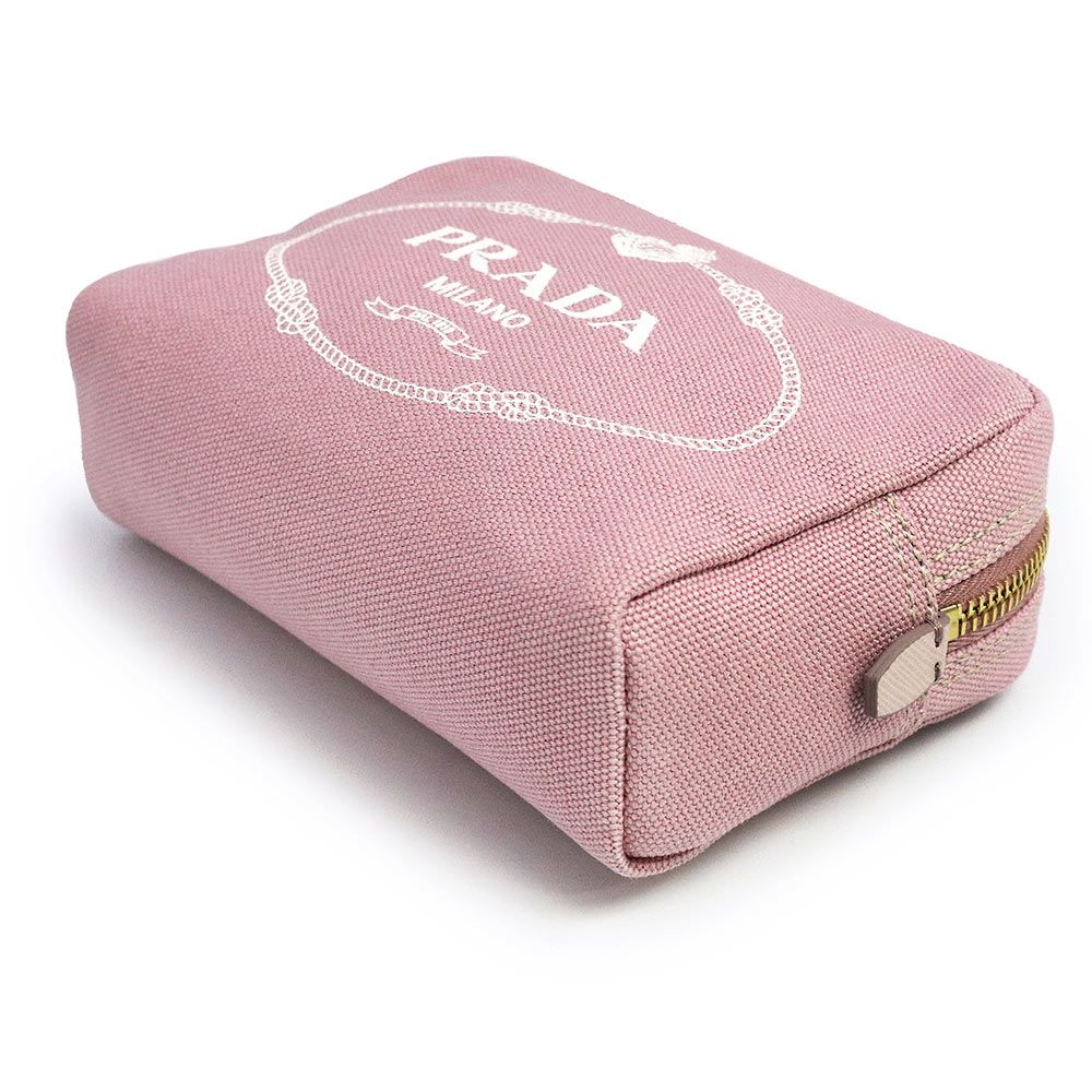 プラダ カナパ ロゴ コスメ 化粧ポーチ コットンキャンバス アラバストロ ビアンコ ピンク ホワイト ゴールド金具 1 NA 021 PRADA