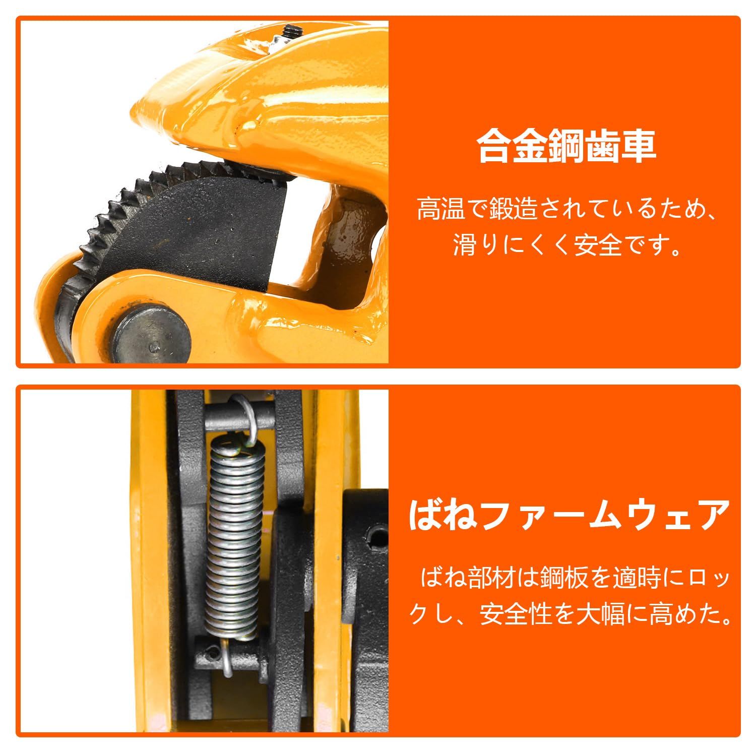 【製品仕様】立吊クランプ容量:最大2T、開口径:0-25mm。この新しいモデルは、ジョー開口が大きく、同じクランプを使用して異なる厚さのプレートを持ち上げることができます。