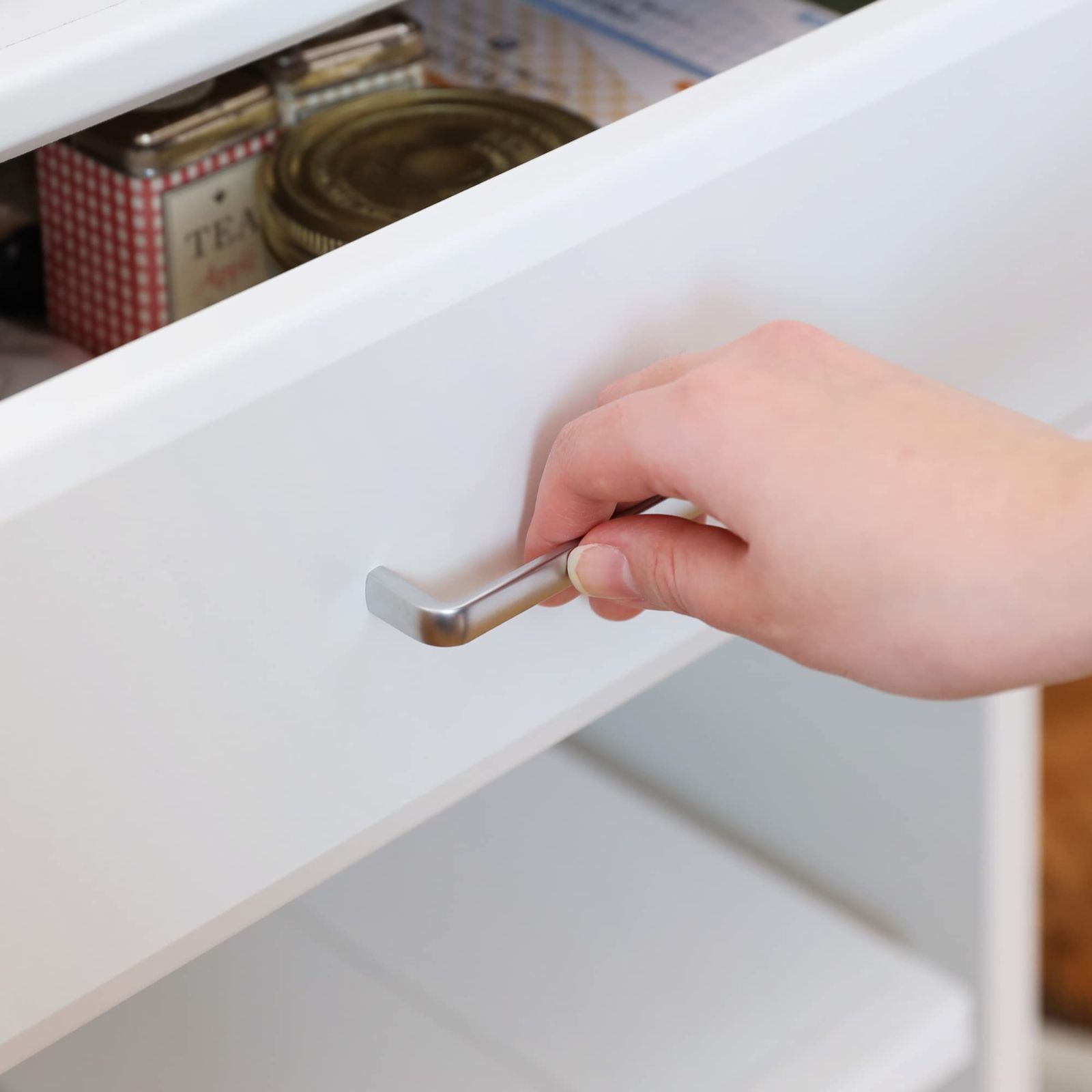 小引出はゴミ箱のストックやキッチン小物の収納に便利です。