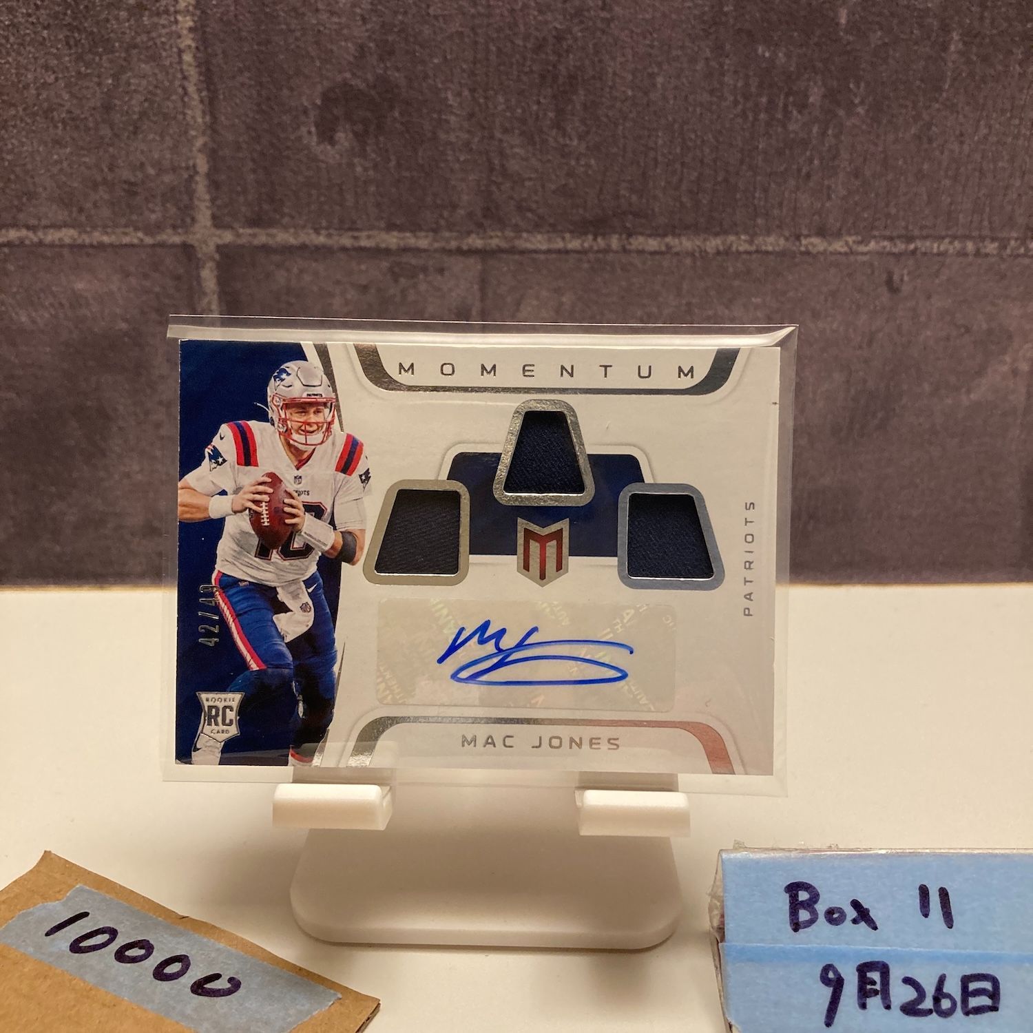 2021 Panini Chronicles Momentu Mac Jones 42 49 直筆サインカード England Patriots Triple ジャージ パッチ カード