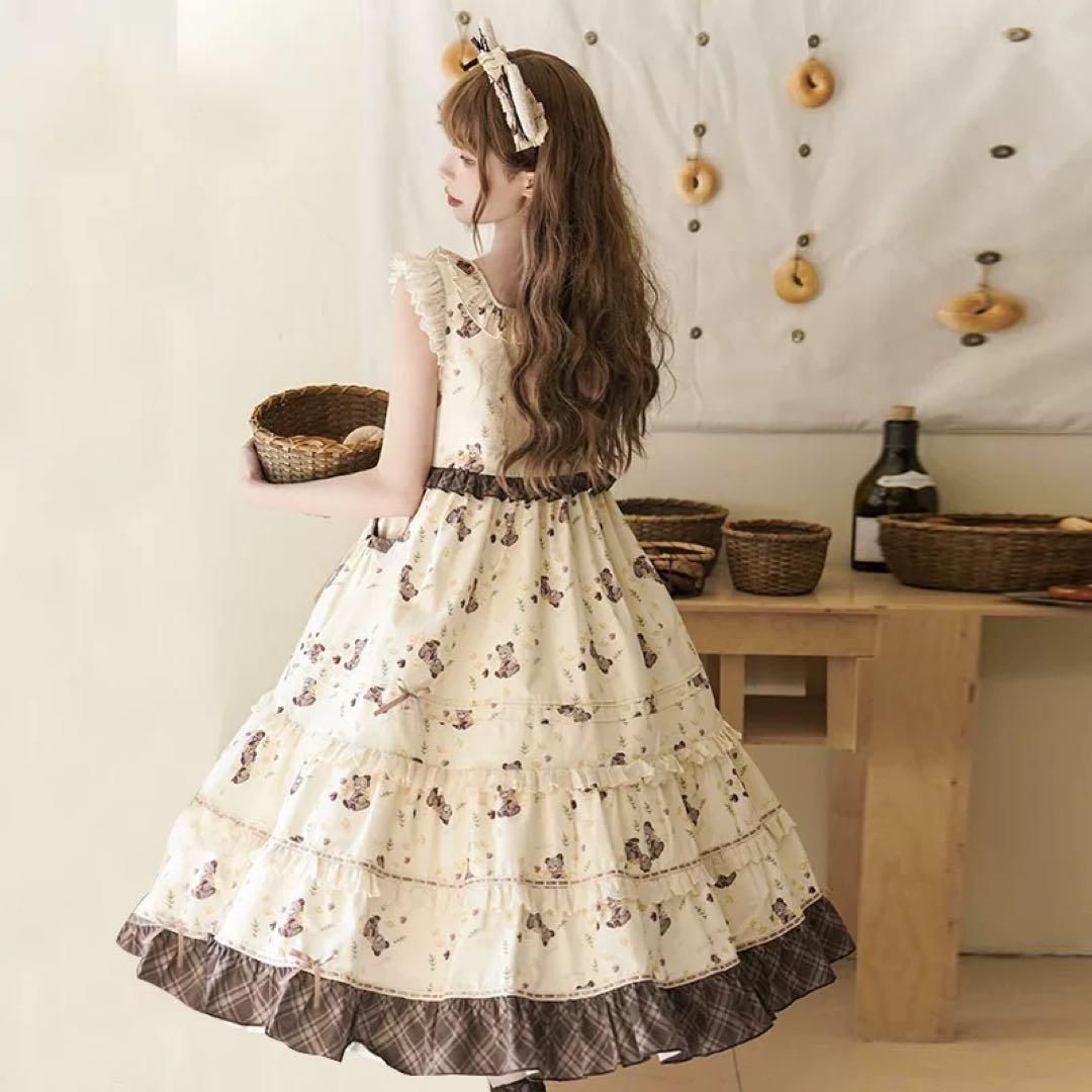 クマちゃん柄がキュートなロリータワンピース、たっぷりフリルでふんわりシルエット。お出かけや女子会にぴったりなこの一着で、あなたのコーデが一段と華やかに。普段の装いにも使える万能アイテムです!