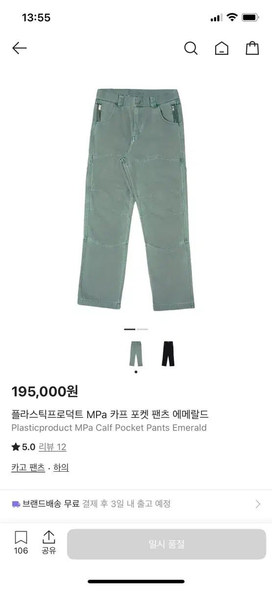 プラスチックプロダクト MPa カーフ ポケット パンツ エメラルド パンツです。