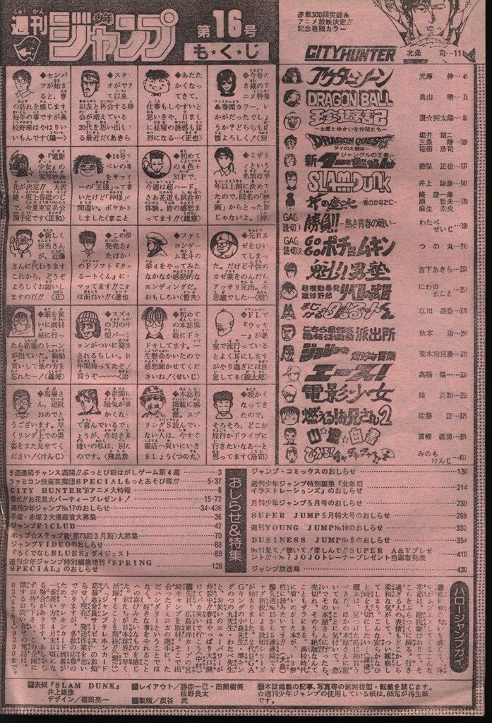 集英社 1991年 平成3年 の漫画雑誌 週刊少年ジャンプ 16 9116