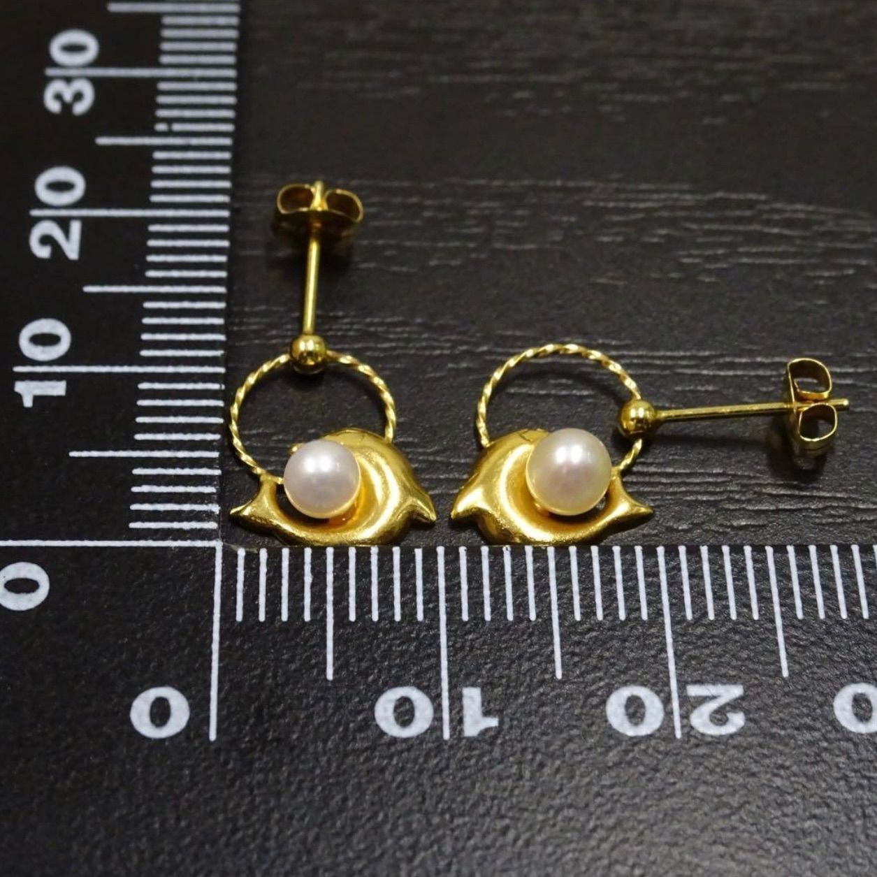 18金 K 18 ゴールド GOLD 750 天然ベビーパール ぶら下がり イルカ デザイン ピアス 両耳 総重量約0.64 g ジュエリー 宝石 貴金属 レディース 普段使い