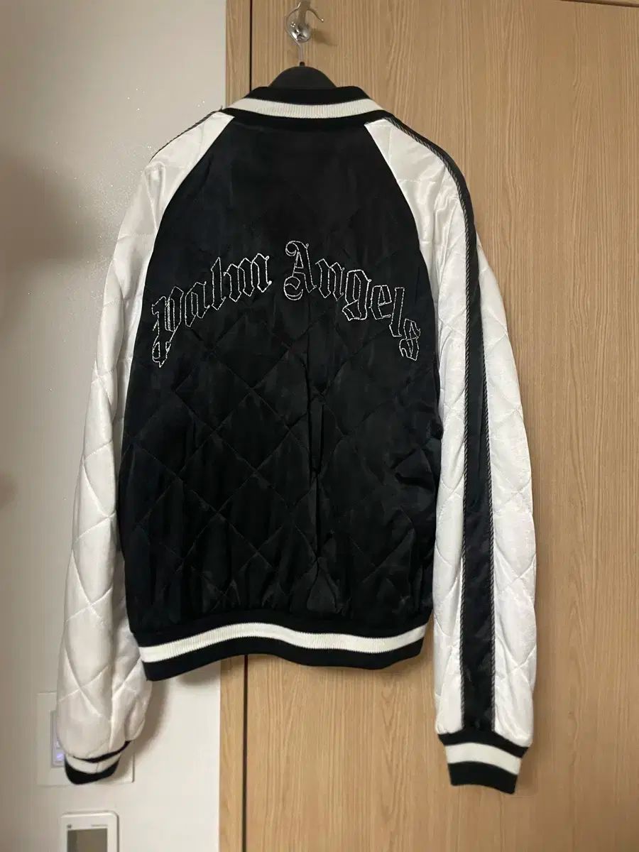 Palm Angels Souvenir Jacket Mサイズ 出品. ブラック カラー バターンに 白 刺繍と LINEが POINT. キルティング 裏地で 保温性も 良い 商品. コメント 無ければ 馬狼 照英 安全決済 して 頂ければ OK!