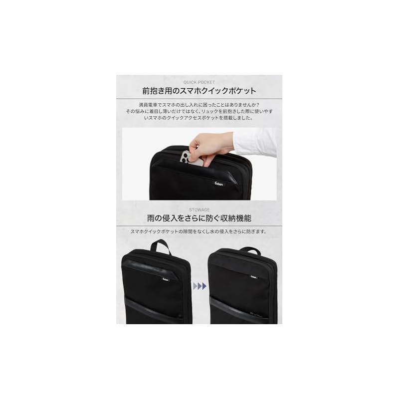 【スマホサイズの薄さで満員電車を快適に】わずか10センチの薄さで満員電車でできるビジネスマンを演出。前抱きの際に便利な位置にスマホをクイックに出し入れできるポケットも搭載。 ※マルチビジネスリュックSlim?は弊社、株式会社Gerberaが権利を保有している登録商標です