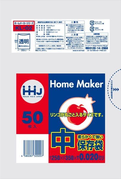 -80点セット KL02 保存袋 中 0 020 ハウスホールドジャパン ポリ袋 レジ袋