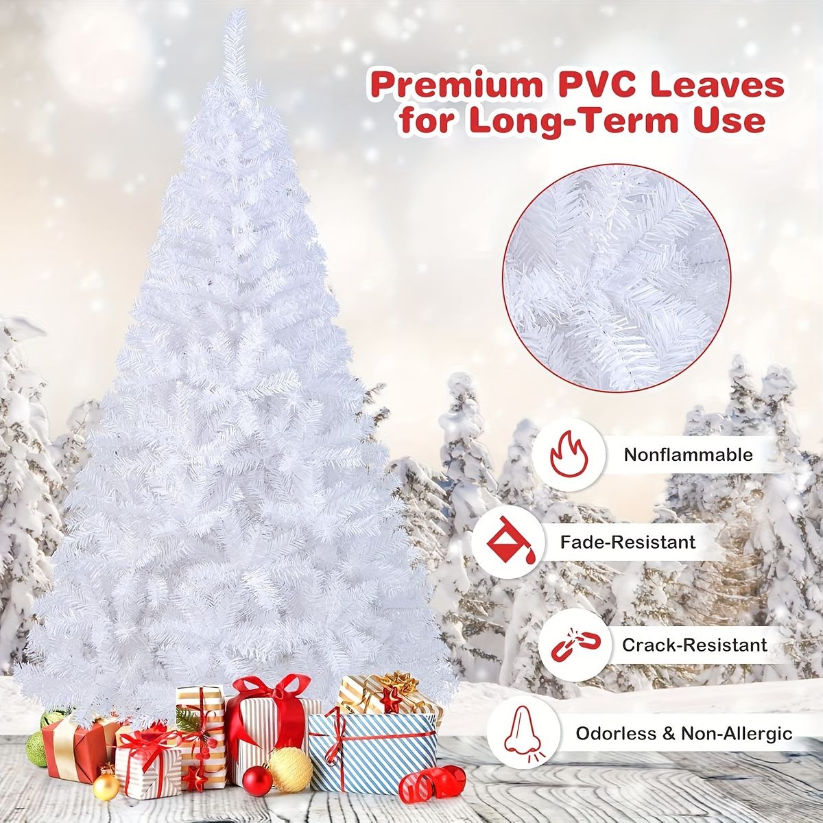 組立簡単&電気不要 クラシックホワイト人工 ツリー メタルスタンド付 120-210 cm 展開 屋内屋外装飾 ホームオフィス ホリデーシーズン 210