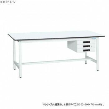 サカエ 軽量作業台KAタイプ キャビネット3段付 抗菌加工 1500 900 740 mm KA 159 CMW