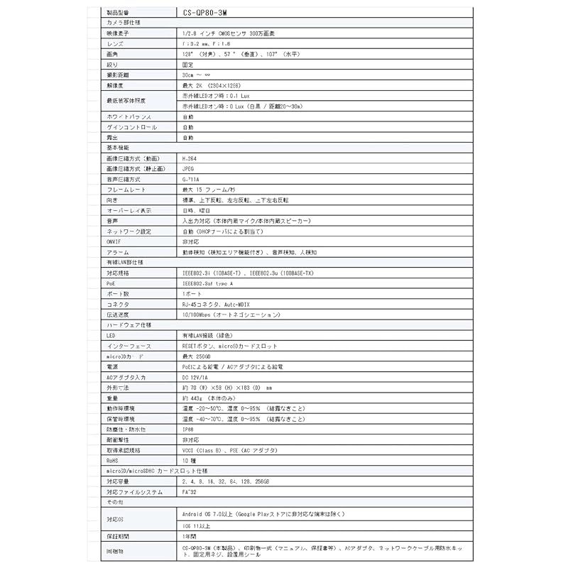 商品名:プラネックス Planex スマカメ Professional バレットタイプ 3MP対応 CS-QP80-3M