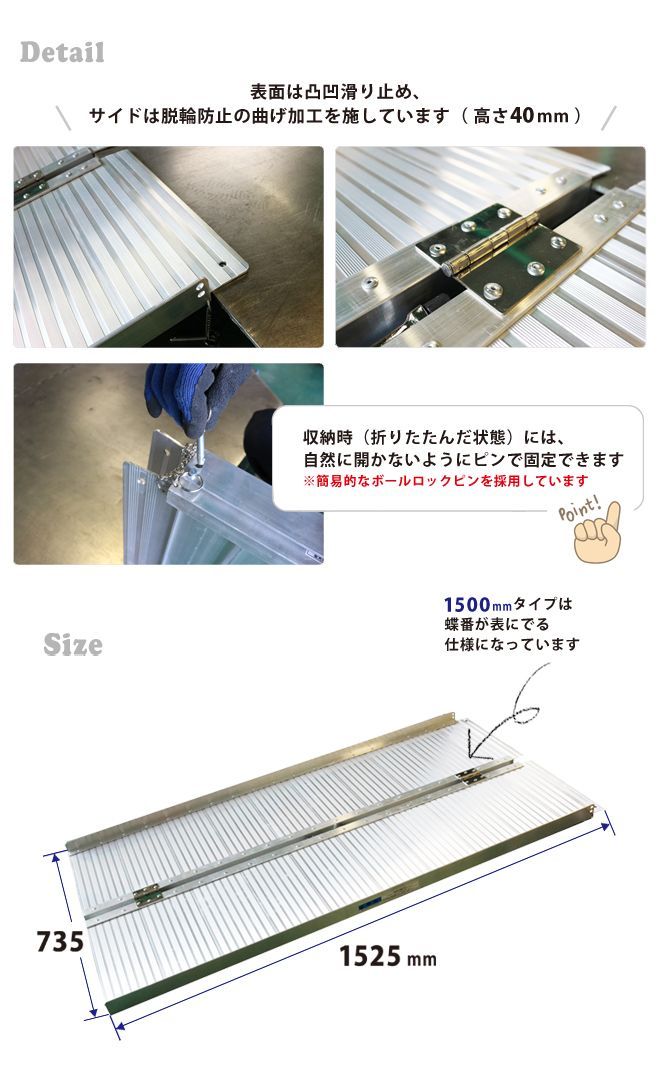 アルミスロープ 車椅子用スロープ 1500 mm ハンディスロープ 折りたたみ式 アルミブリッジ ゴムマット プレゼント KIKAIYA →