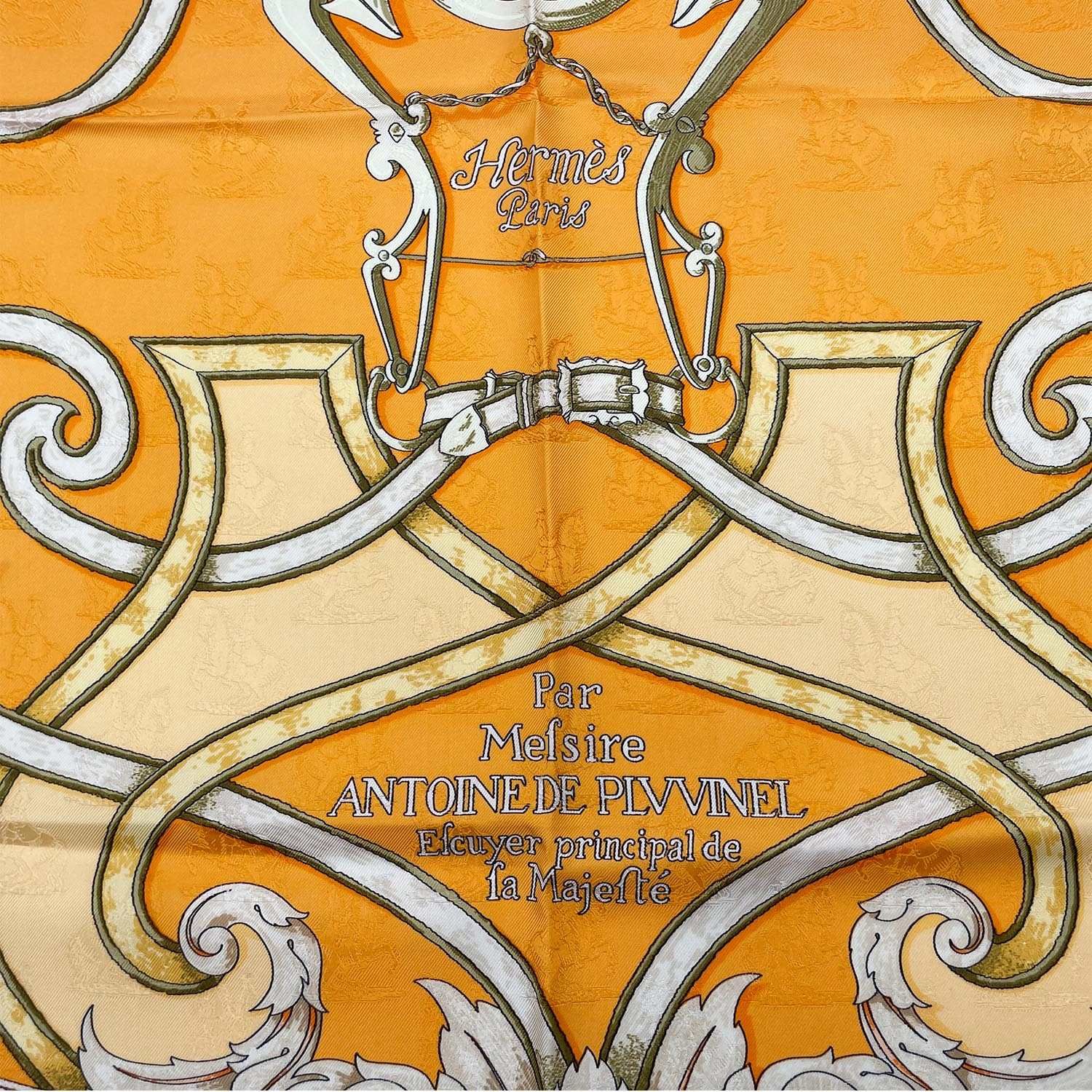 HERMES エルメス カレ90 LINS TRUCTION DU ROY 帝王学 ジャカードシルク オレンジ