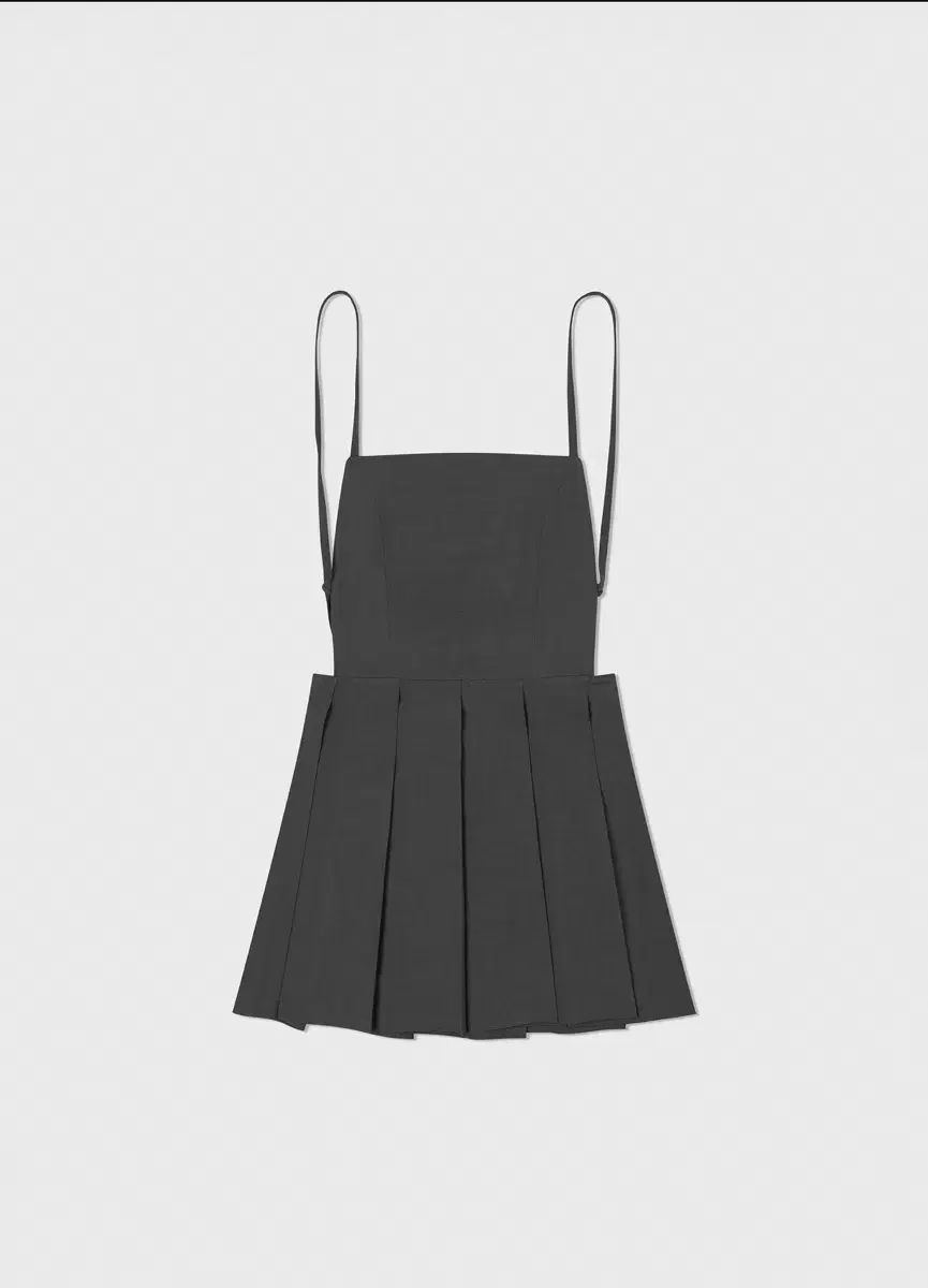 LOW CLASSIC ロウ クラシック プリーツ ミニ ドレス チャコール