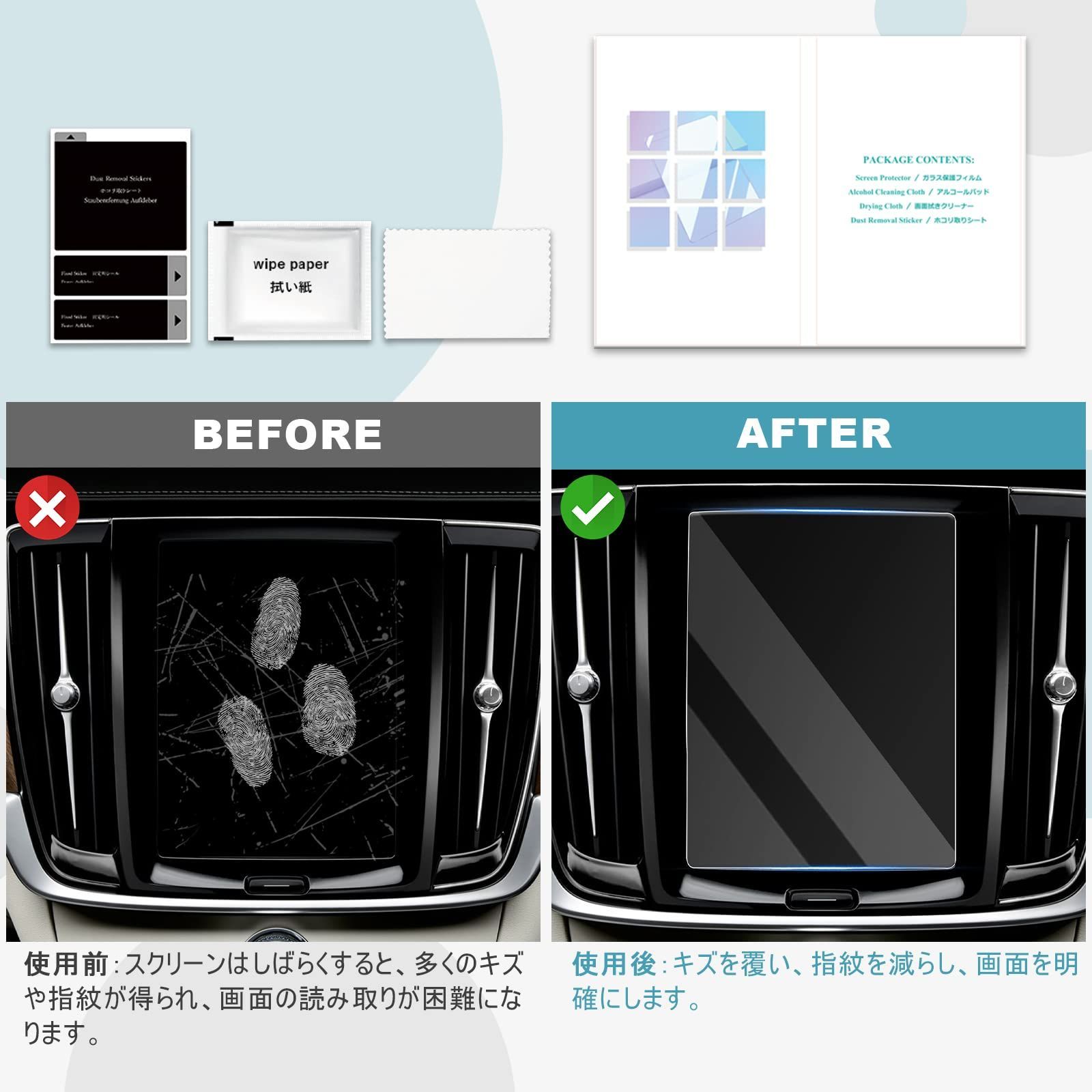 【貼り付け簡単】volvo v60 ナビ 保護フィルムは自己吸着タイプで、貼り付けが簡単です。 気飛散防止加工、汚れ防止、キズ防止、大切な愛車の画面を全面保護します。使用感も大幅UP。ボルボ xc40 フィルム