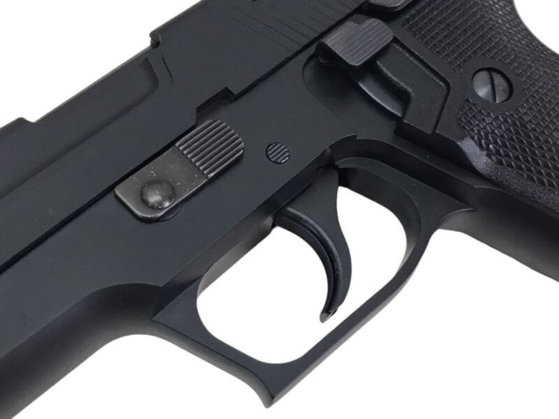 『P75』はスイス軍採用バージョンの仕様をモデルアップしており、P220初期型特有のスライド先端を絞り込んだような独特のスタイリングや各部の刻印もリアルに再現!
