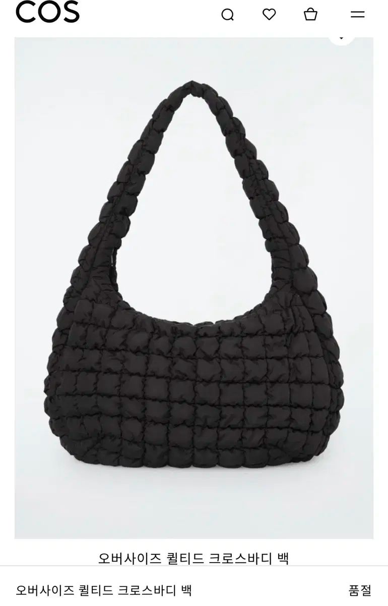 これは黒のCOSキルトクロスボディバッグです。