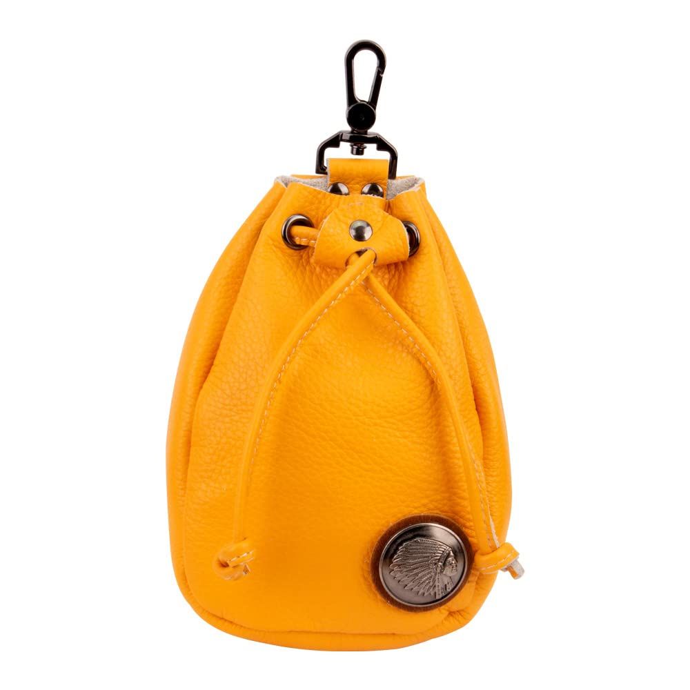 Whatna天 然 厚 手 牛革 小銭入れ コインケース メンズ レディース 2way巾着袋 ミニサコッシュ カラビナポーチ ベルトループ ミニウエストバッグポーチ 本革6.5インチiphoneを収納可 イヤホン収納ケース カラビナ付き (ブラウンD)