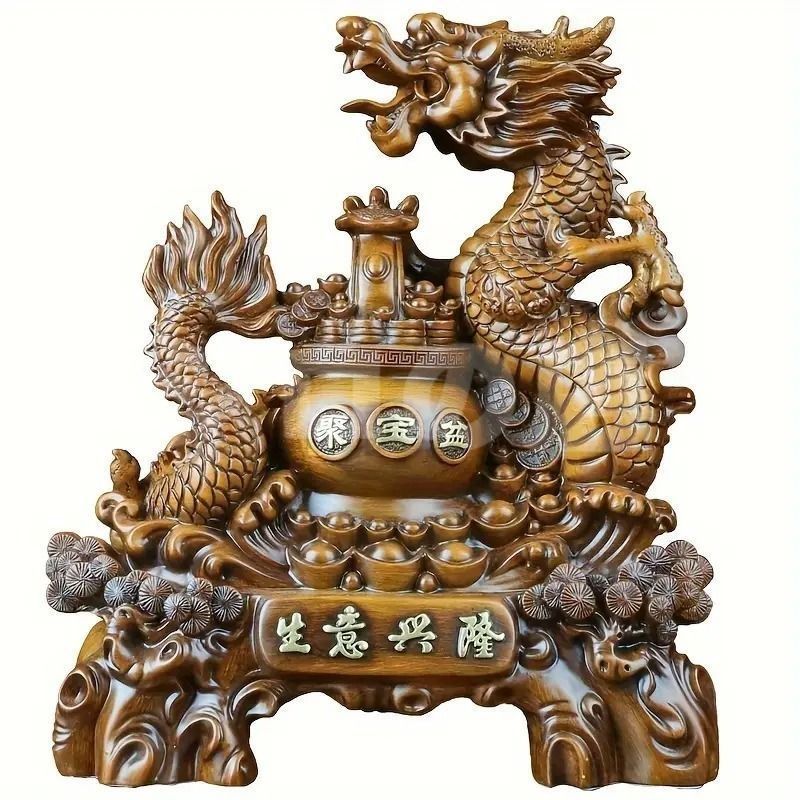 また、ドラゴンの姿が豪華に彫刻されたデザインは、見た目にも迫力があり、空間に強い存在感を与えます。樹脂素材で作られており、繊細なディテールが施されているため、その美しさはインテリアとしても一流です。金運や繁栄を願いながら、このドラゴンを飾ることで、日常生活にポジティブなエネルギーが流れ、運気が高まると信じられています。