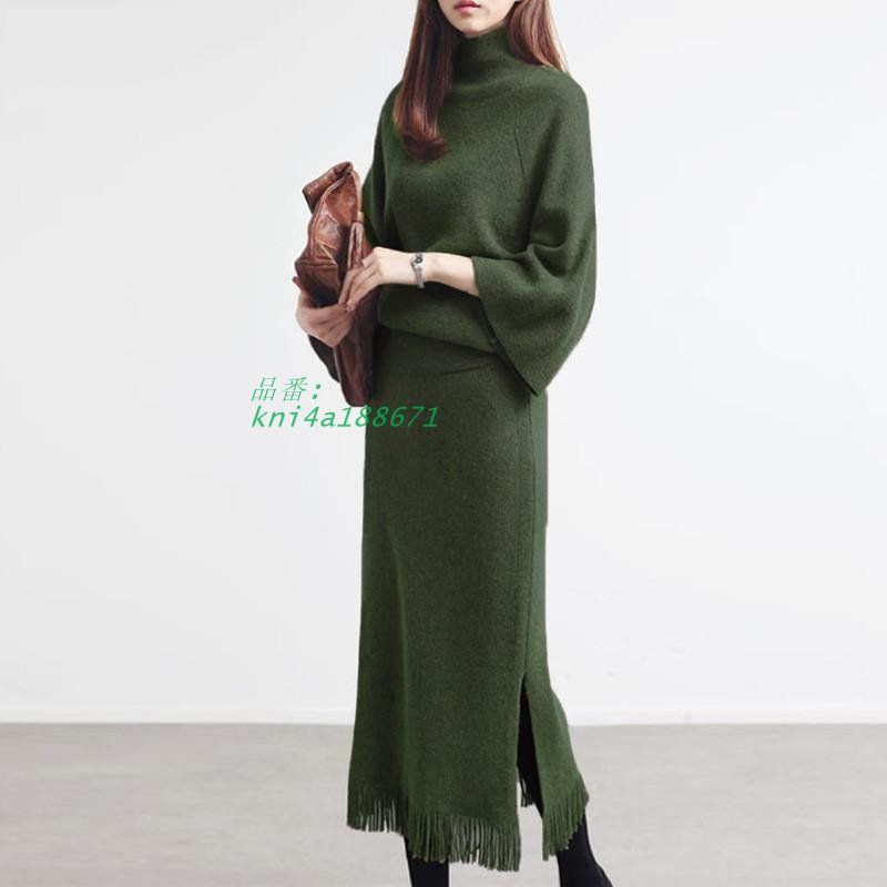 セットアップ レディース ニット 秋冬 長袖 上下セット オシャレ 卒業式 ロング丈 スカート ハイネック カジュアル セーター kni 4 a 188671