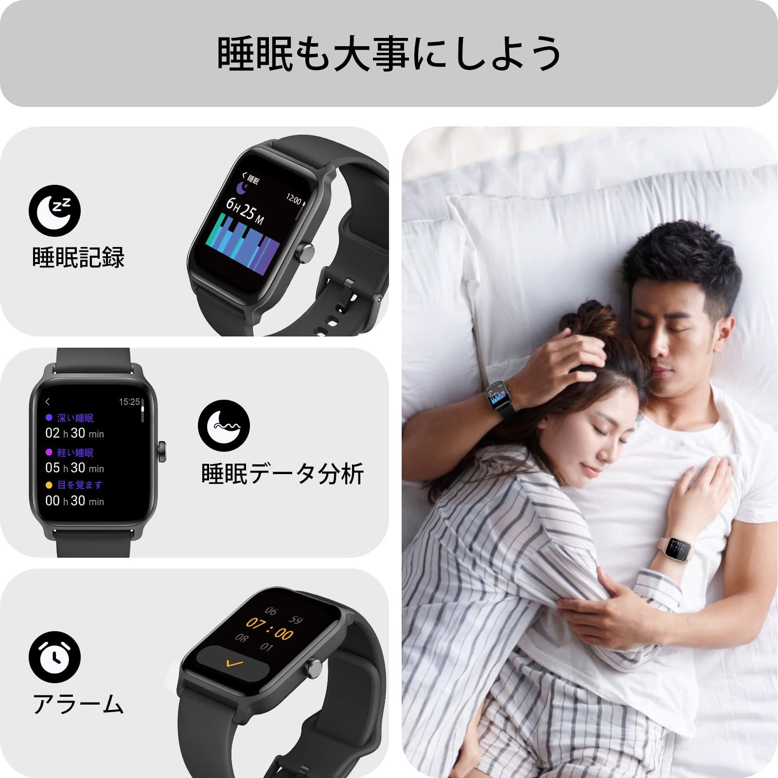 【あなたの毎日を見守ります】このスマートウゥッチは屋外屋内のランニング、サイクル、水泳、ヨガ、ダンスなど100種類以上の運動モードが対応できます、歩数・距離・消費カロリー・運動時間・睡眠質などのデータは記録し統計されます、専用アプリに生活データのトレンドがグラムによりアドバイスもします、大事な毎日を見守ります