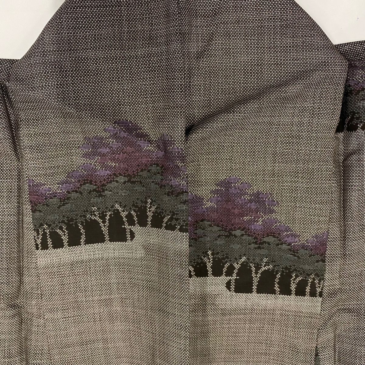 紬 身丈163.5 cm 裄丈64 M 袷 樹木 霞 焦茶色 正絹 秀品
