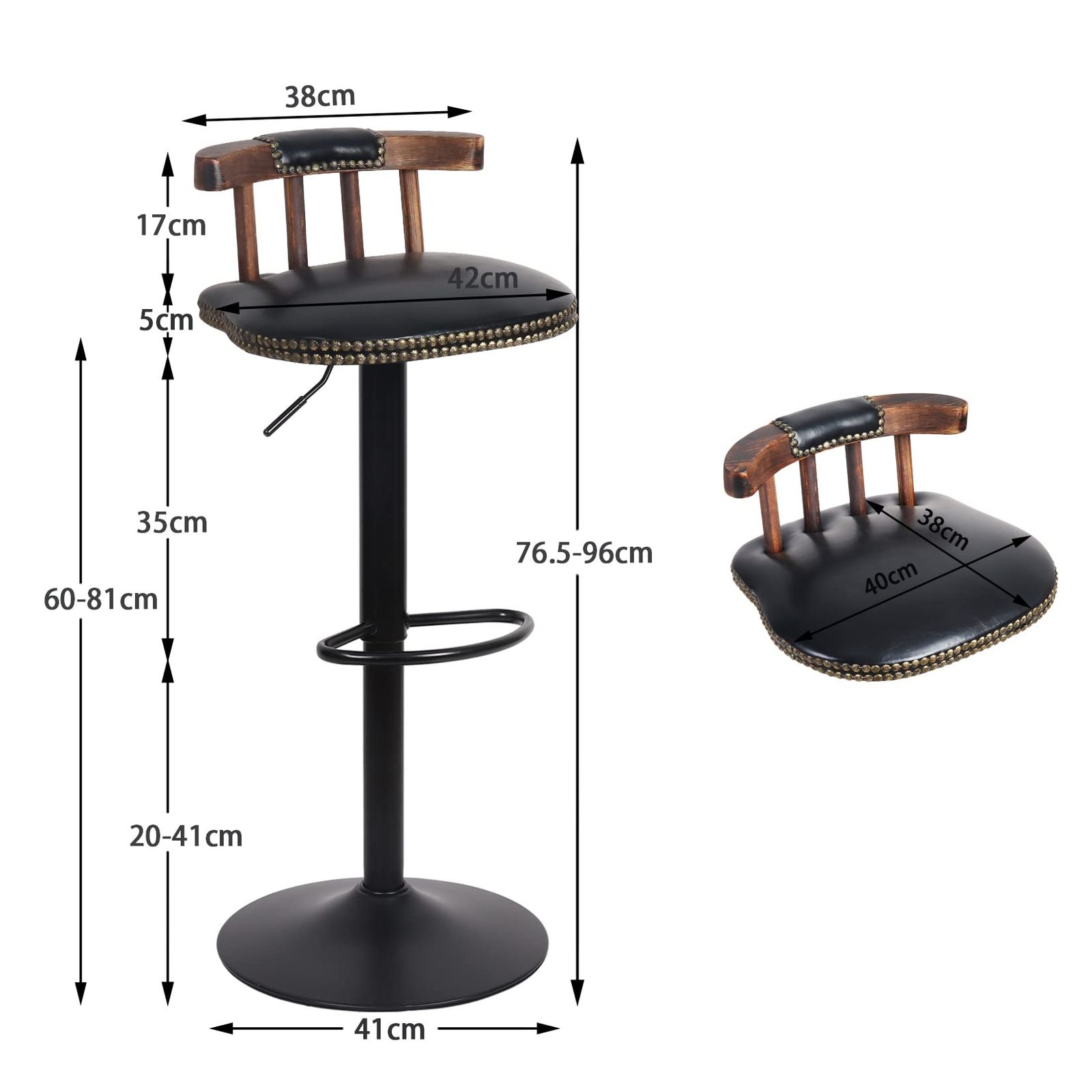 【360度回転・高さ調整】座面が360度回転するので、チェアを動かなくても簡単に立ち座りできます。座面下のレバーで高さを調整できるので、カウンターや身長に合わせて高さを調節できます