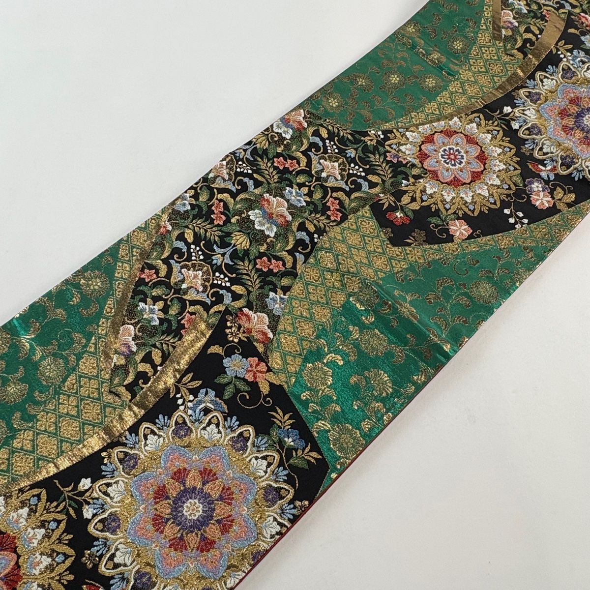 袋帯 秀品 正倉院浪漫 華文 花唐草 金糸 箔 深緑 六通 正絹