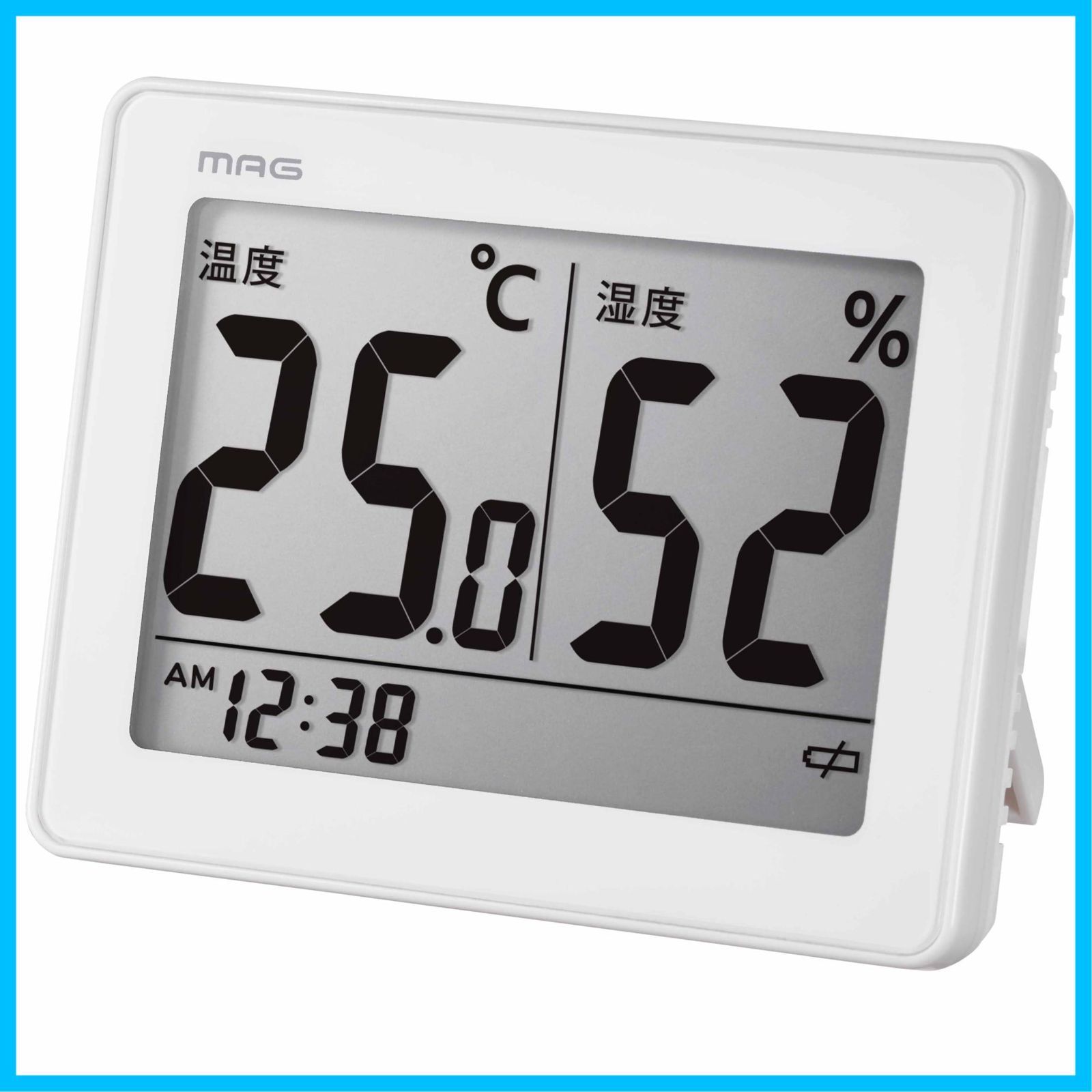 MAG(マグ) 温度計 湿度計 温度湿度計 デジタル 環境目安表示 熱中症 インフルエンザ 乾燥 時計表示 小型 置き掛け兼用 ホワイト スカイ TH-109 WH-Z ノア精密