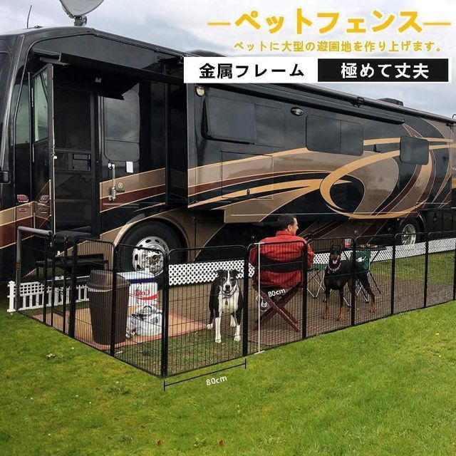 【折畳み式&気軽に搬送】折りたたみ式設計に外し可能な特徴を加えて、ペットを他所に移動する場合、速やかにペットフェンスを速やかに車両に搬送できます。平らに折りたためますので、保存・搬送しやすいです。