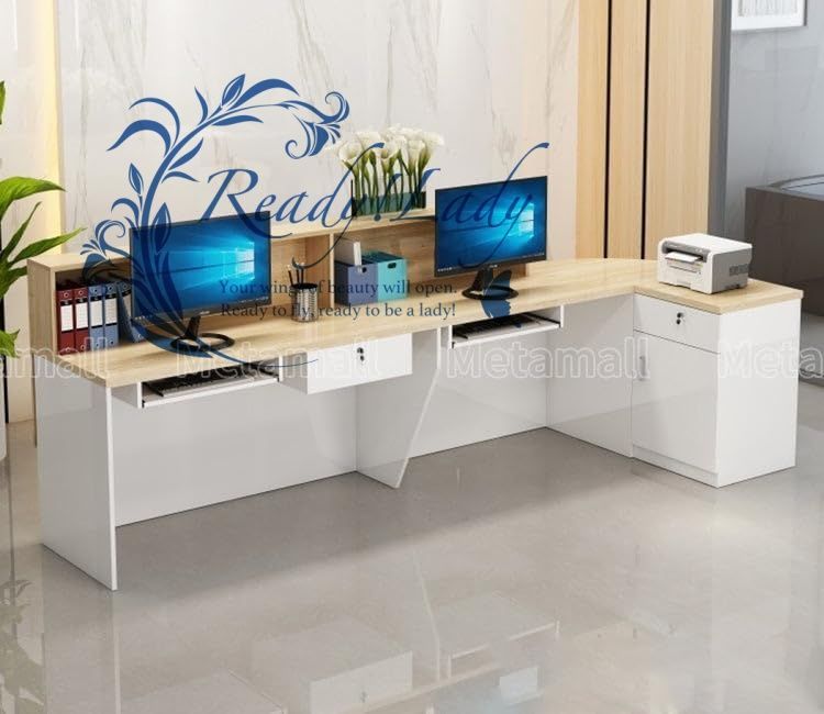 受付カウンター L字カウンター カウンター 受付台 オフィス受付 エントランス受付 大容量収納 モダンデザイン 木目調 イエロー ホワイト 140 100 cm 右タイプ