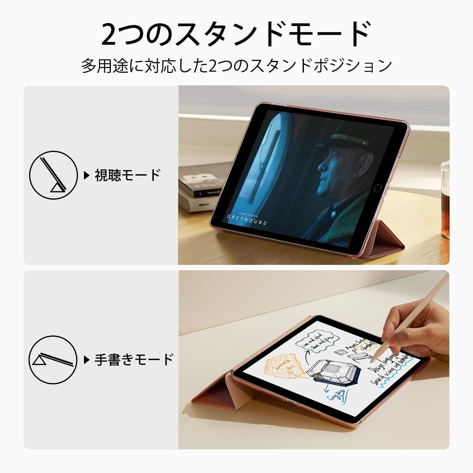 商品 ESR iPad 9世代 ケース カバー 第9 8 7世代通用 2021 2020 2019モデル 10.2インチ 半透明 指紋防止 三つ折りスタンド オートスリープ ウェイク機能 薄型 軽量 傷防止 耐衝撃 ハードカバー ローズゴー