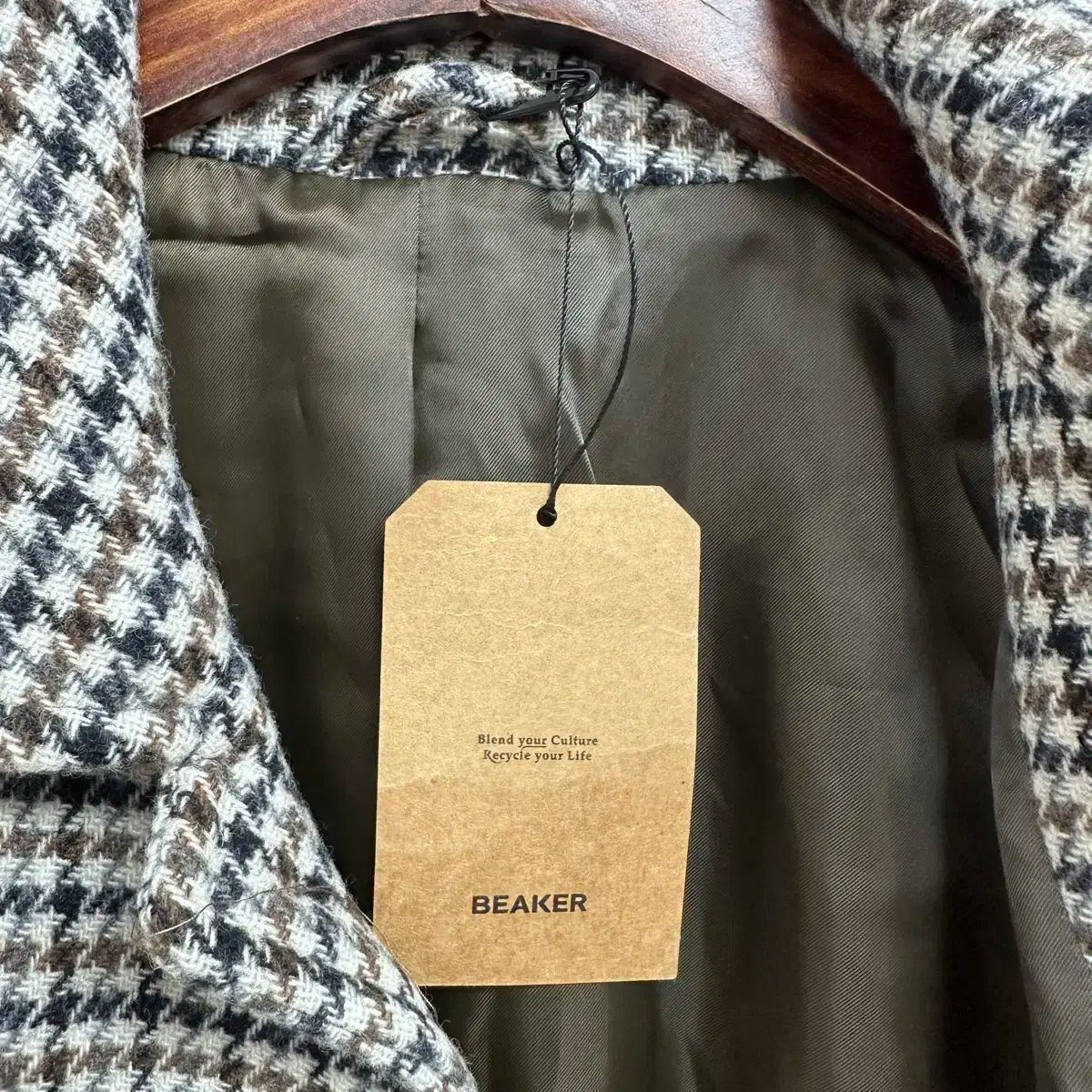 高級感のあるハウンドトゥース チェック パターンが際立ちます。クラシックなデザインで長く着られそうです。