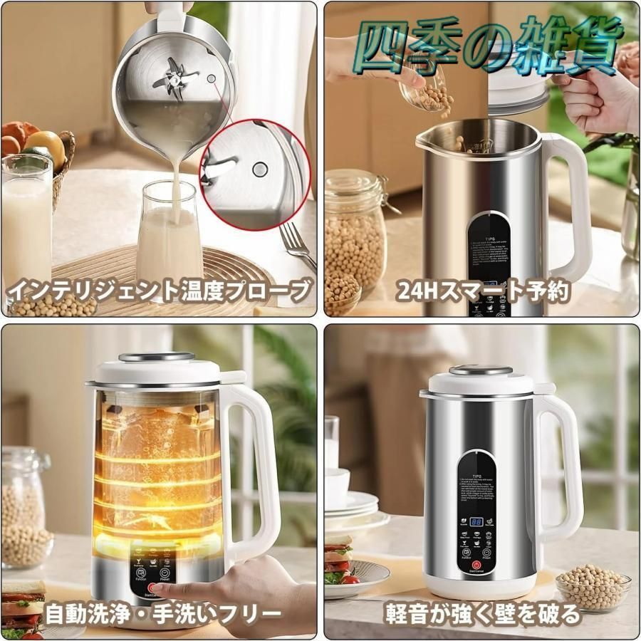 豆乳メーカー 豆乳マシーン ジューサーミキサー スープメーカー お粥メーカー 豆乳ブレンダー ジュース機 1.2 L 全自動 家庭用 自動調理 濾過不要 24時間予約機能
