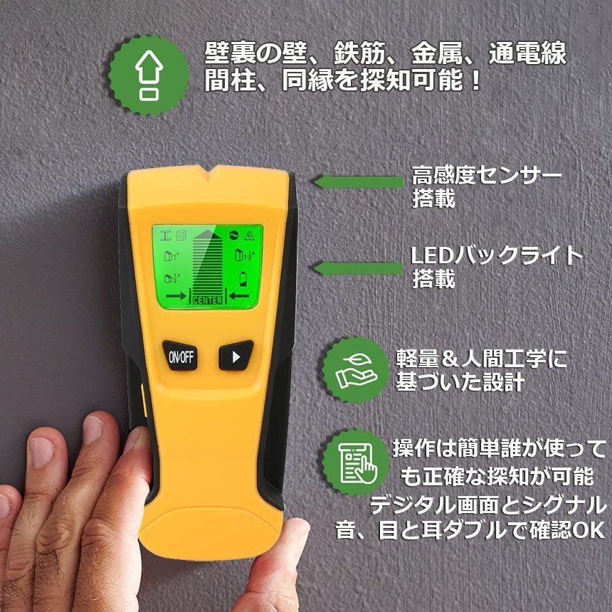壁裏センサー 下地探し 下地センサー 4台セット 下地チェッカー 壁裏探知器 壁検出器 デジタル 一台三役 金属 木材 配線 位置 内装材 DIY 新築 LCD 電池残量表示 火災報知器 壁面 設置 バックライト付き