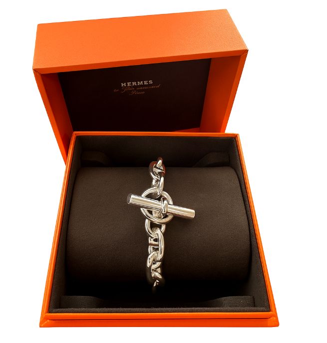 一目でエルメスとわかるシルエットの存在感のあるシルバーブレスレットで、コーディネートのメインアクセサリーとして長期間活躍してくれます。