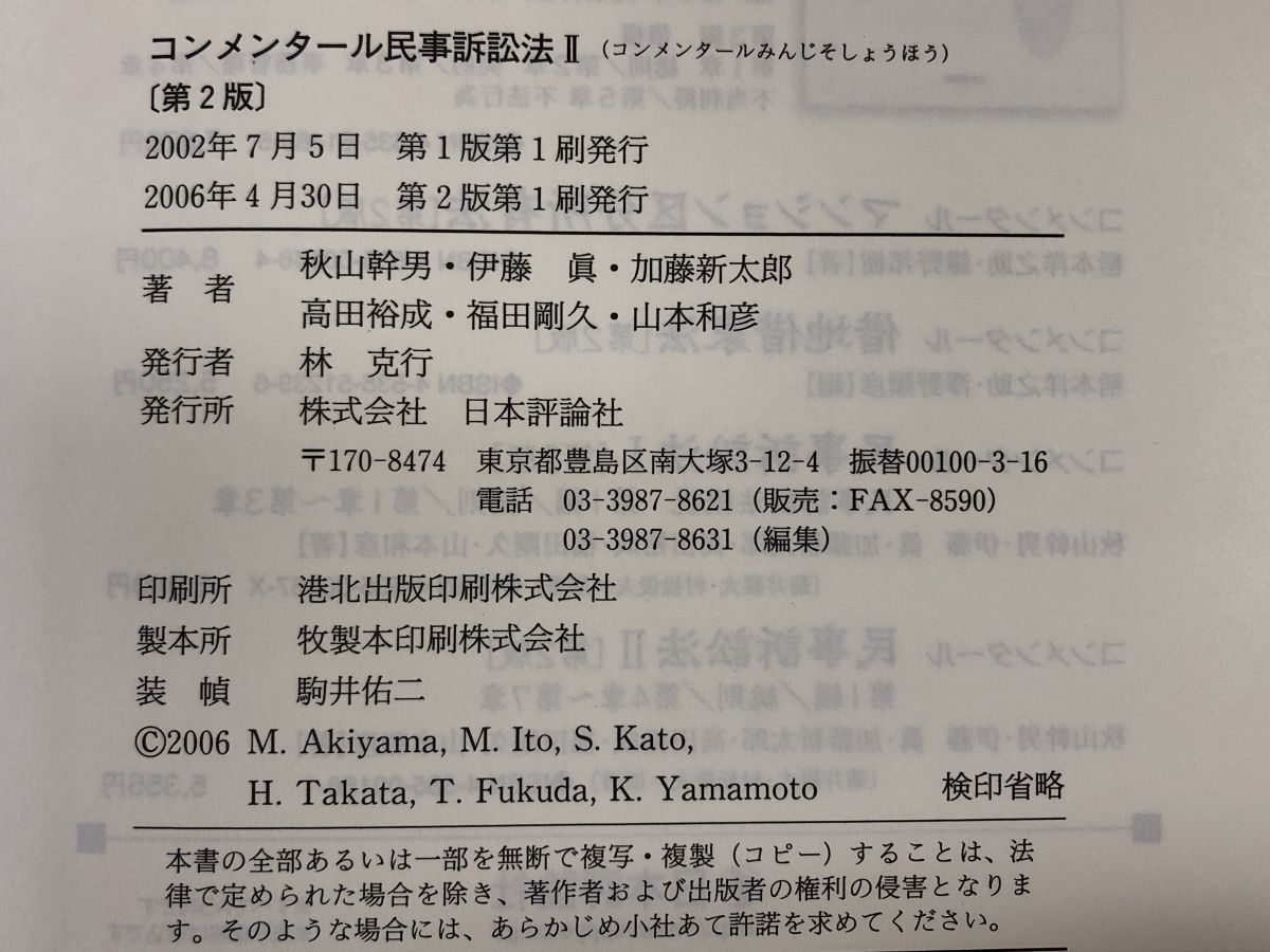 コンメンタール 民事訴訟法 第2版 3冊 1 2巻 1巻追補版 第2編3巻 第3編4巻 計5冊セット 秋山幹男 他 著 日本評論社