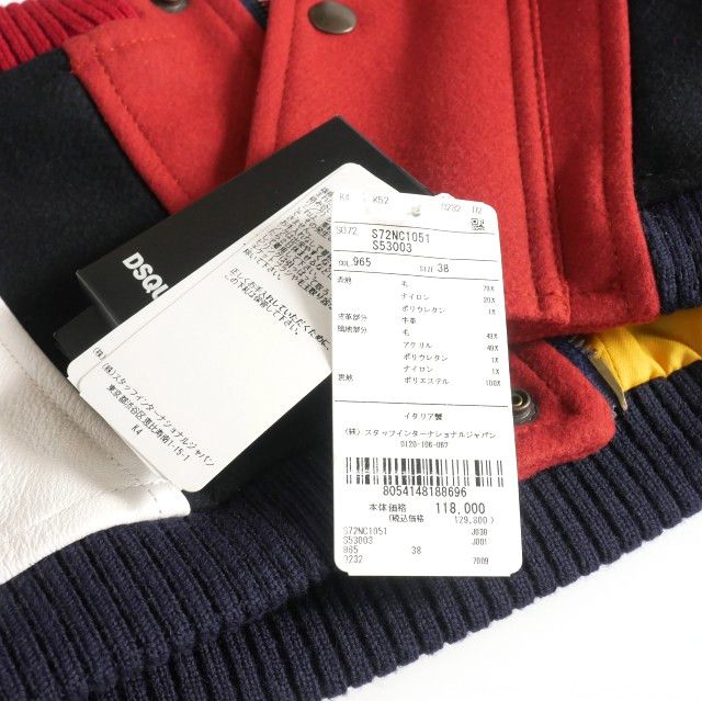 ディースクエアード 23 AW Varsity Corset サイドレザー ウール コルセット チューブトップ ベアトップ ノースリーブ 38 レッド ネイビー ホワイト 正規