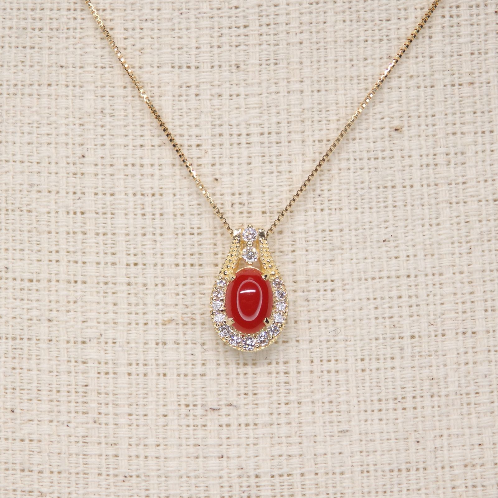 イエローゴールドと珊瑚の赤が非常にマッチしたペンダントです。