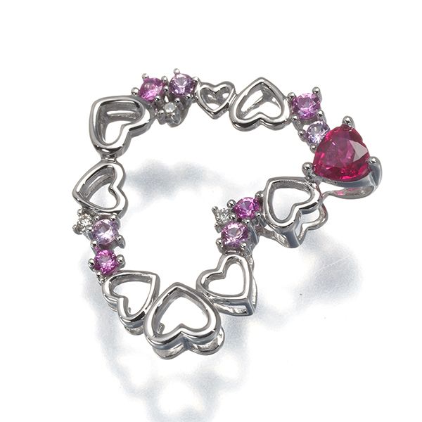 笠原真寿美 ペンダントトップ ルビー ピンクサファイア ダイヤ ダイヤモンド ハート K 18 WG 181337