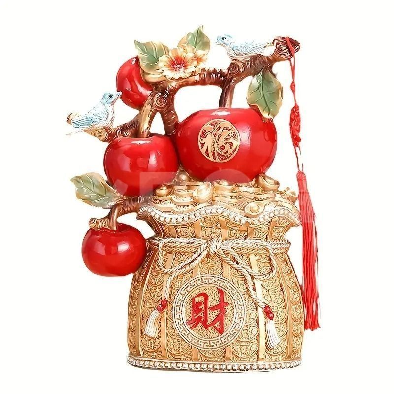 金色の林檎は、特に「財運」を呼び込むとされ、家庭やオフィスに置くことで、繁栄や発展を願う人々にとって理想的なアイテムです。また、林檎は「愛」「健康」「幸福」といったポジティブなエネルギーをもたらすとも信じられています。そのため、この置物を飾ることで、日々の生活に幸運を呼び込み、心豊かな日々をサポートしてくれるかもしれません。
