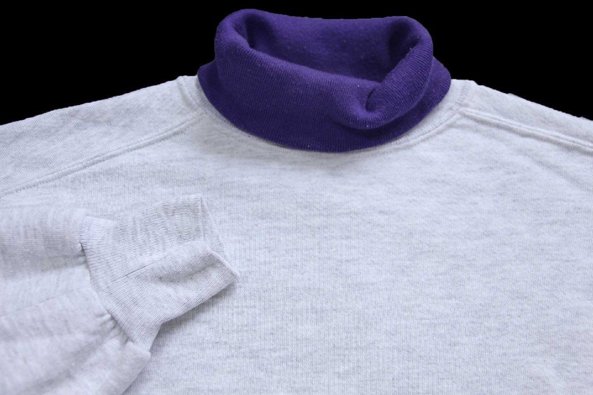 90 s JERZEES 無地 タートルネック スウェット 杢ライトグレー×紫 XL ブランク RUSSELLラッセル ビッグサイズ