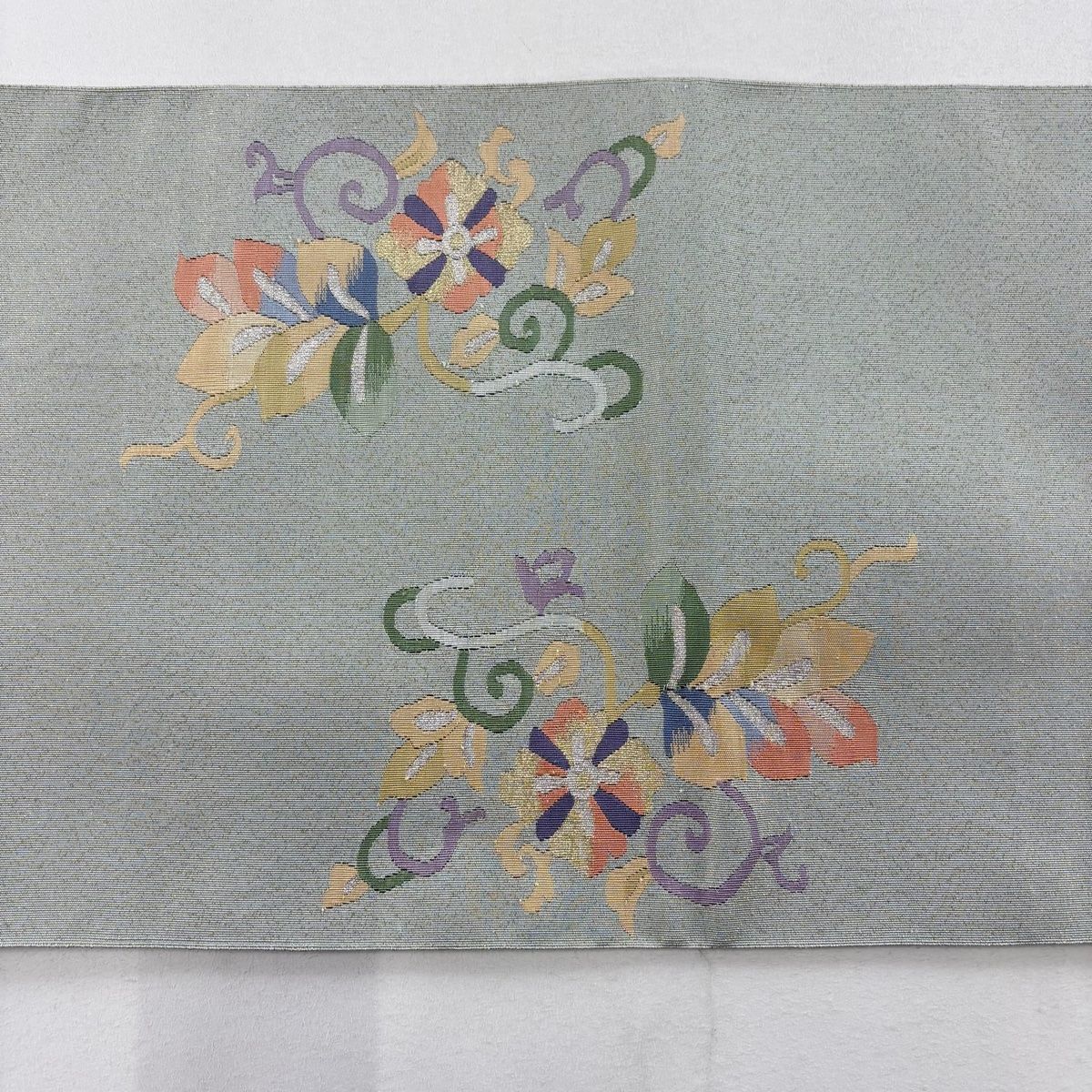 名古屋帯 秀品 八寸名古屋帯 松葉仕立て トンネル仕立て 花唐草 華文 金銀糸 灰緑 正絹