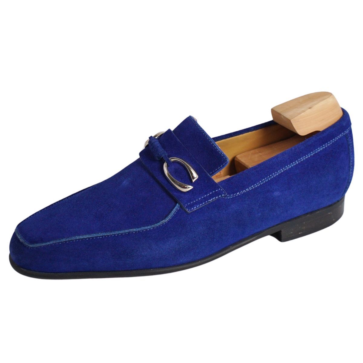 美品 コルテ Corthay ローファー モカシン ビジネスシューズ スウェードレザー 革靴 メンズ 7.5(26.5cm相当) ブルー
