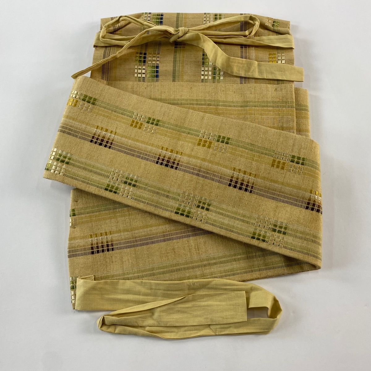 付け帯 落款 作り帯 紬地 ロートン織 新垣みどり 縞模様 薄茶色 正絹