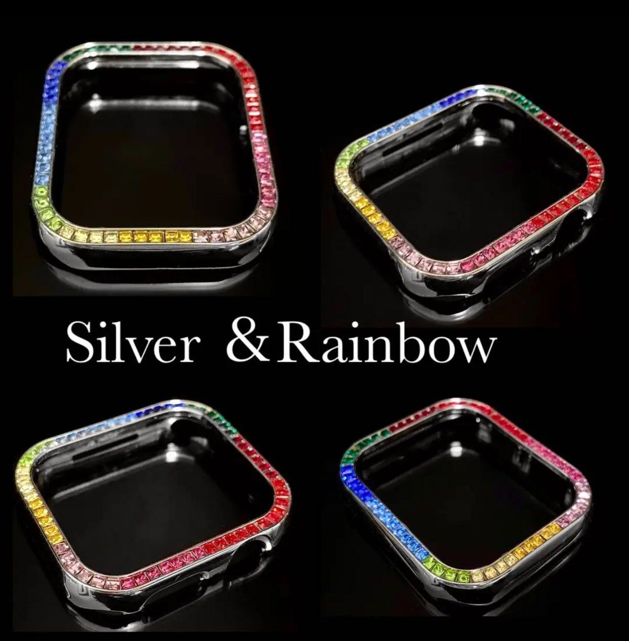シルバーレインボー×ブラックAppleWatchキラキラカバーアップルウォッチラバーバンド