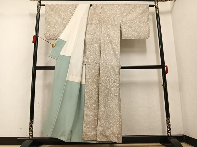 平和屋着物 本場大島紬 白大島 一元7マルキ 花唐草文 正絹 ph